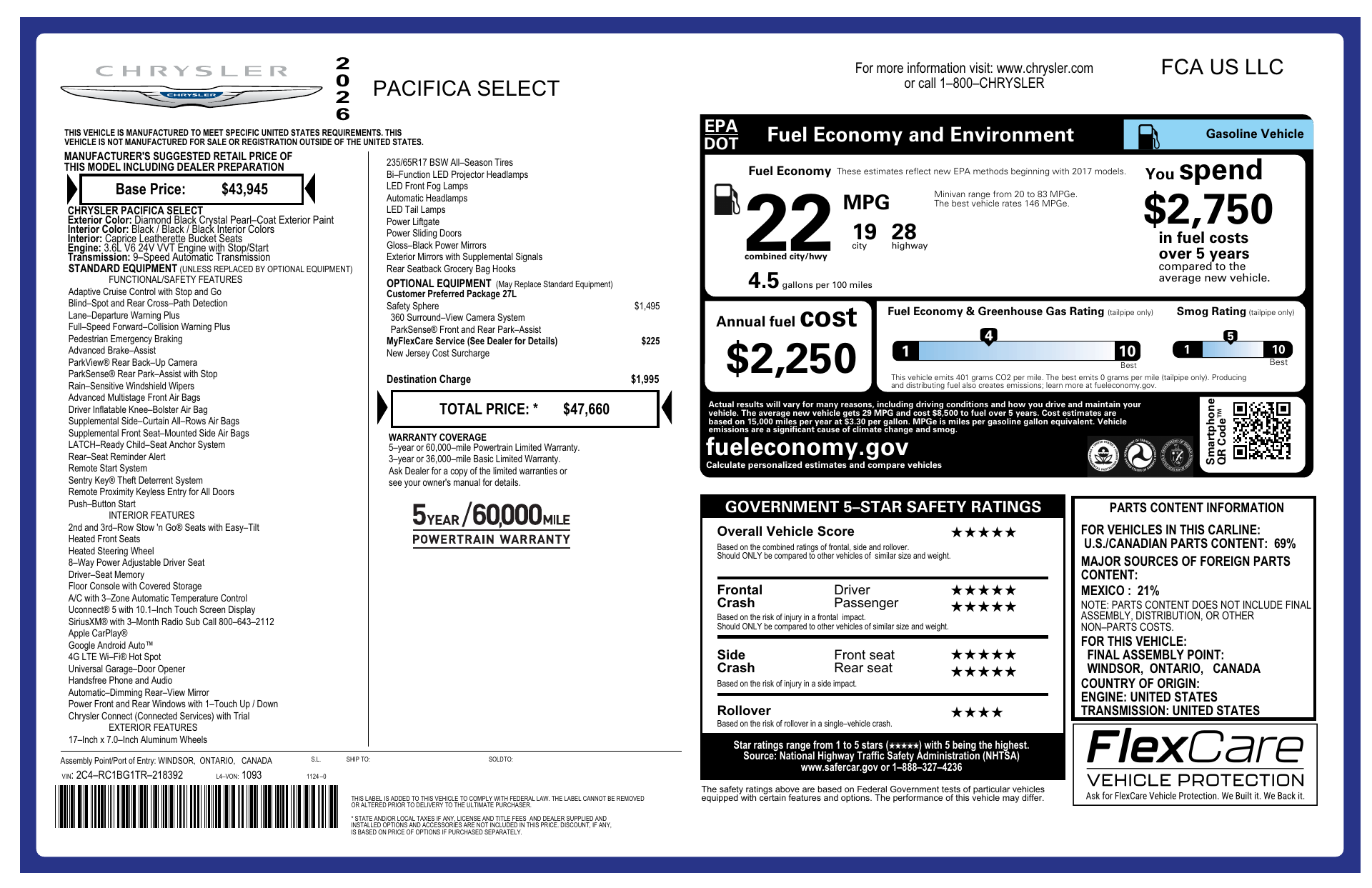 Turn heads in the 2026 Chrysler Pacifica Select — finished in sleek Black with a matching Black interior for a modern, sophisticated look. Family-ready features include versatile Stow ’n Go seating for effortless cargo and passenger flexibility, advanced driver-assist technology for confident highway drives, and a quiet, comfortable cabin built for long trips. Plus, it comes with basic, powertrain and rust warranties for added peace of mind — stop by today and take it for a test drive.